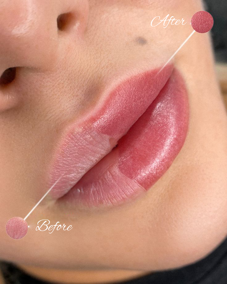 Enhance your lips pigment with Lip Blush, a semi-permanent cosmetic tattoo that adds natural color, shape, and definition. This technique uses gentle pigment infusion to correct asymmetry, define the lip line, and give lips a fuller, more youthful appearance.